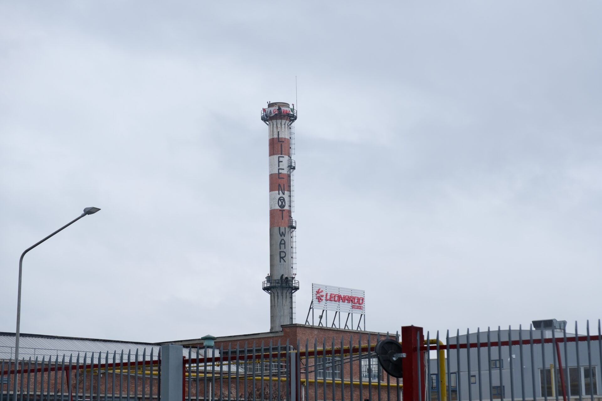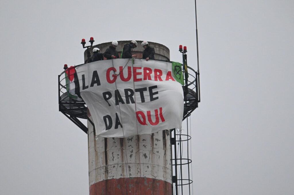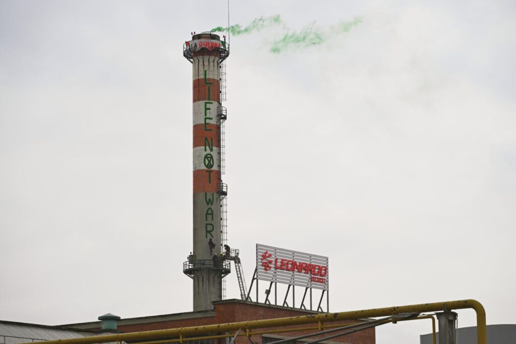 Un’azione di protesta di Extinction Rebellion ha preso forma questa mattina presso la sede di Leonardo, dove attivisti hanno dipinto la frase “Life Not War” sulla ciminiera dell’azienda. L’obiettivo dell’iniziativa è denunciare il ruolo di Leonardo nella produzione di armamenti utilizzati in conflitti internazionali e contestare l’aumento della spesa militare a discapito di investimenti ambientali e sociali.