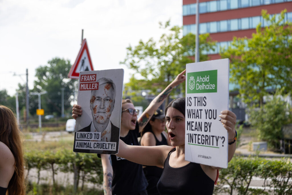 Nuove tensioni durante le manifestazioni di Animal Equality in Olanda. Gli attivisti dell’organizzazione internazionale per i diritti degli animali hanno subito minacce di morte mentre contestavano il colosso della distribuzione Ahold Delhaize a Zaandam, accusato di non aver rispettato l’impegno di eliminare l’allevamento in gabbia dalla propria filiera negli Stati Uniti.